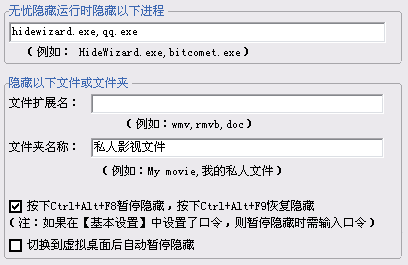 5、进程隐藏功能和文件隐藏功能在同一个设置页面,如图: